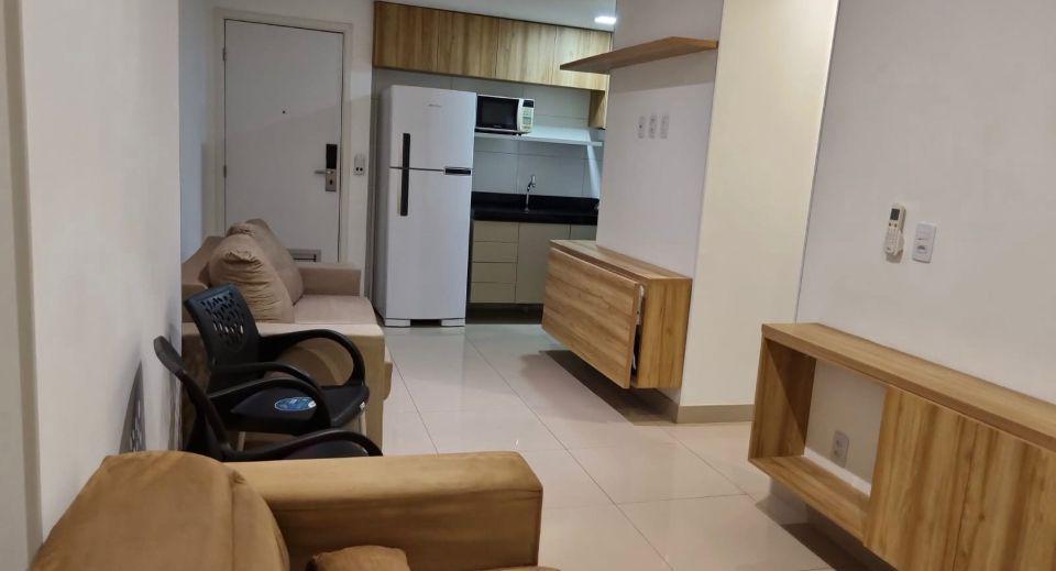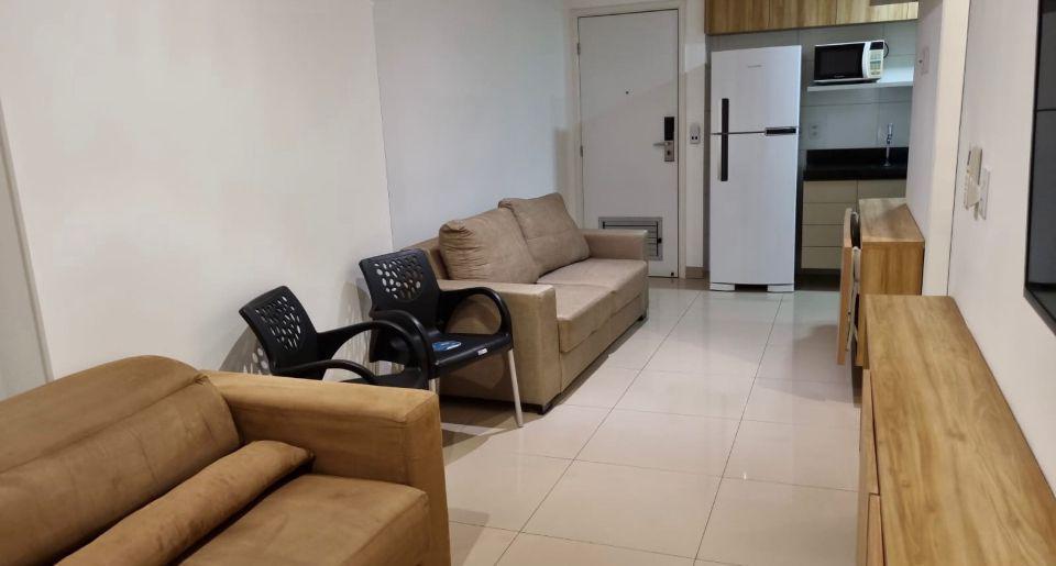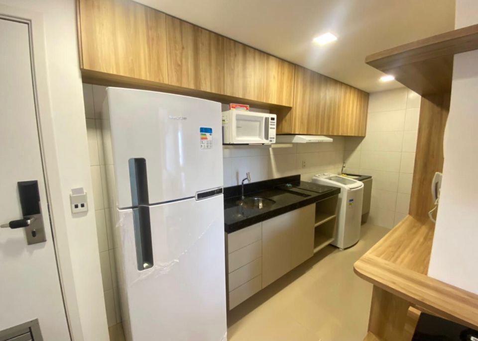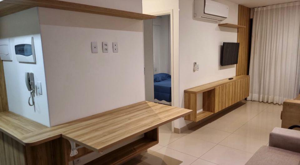 1 Quarto mobiliado, Ar condicionado VRF, Geladeira duplex Frost Free, máquina de lavar roupa Electrolux 8kg,é Adaptado para Necessidades de acessibilidade com mesas recolhiveis, Guarda-roupa preparado para descida do cabideiro á altura do cadeirante, wc com barras de segurança e cadeira dobrável no box, colchão com molas ensacadas e independentes com altura para cadeirante,Recepção 24h, Restaurante, Sala Fitness, piscina, lavanderia omo, Salões de Convenções, Salão de beleza, 1 Vaga de garagem