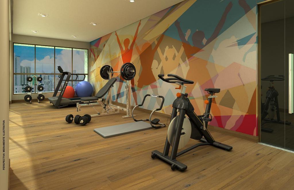 Apartamentos com área privativa a partir 28.17 m², 1 Sala(s) para 2 ambiente(s), Cozinha, 1 WC Sociais, 2 Elevadores, bicicletário, central de gás, espaço gourmet, estacionamento, lavanderia, piscina, portão eletrônico, rua calçada. sala de ginástica.