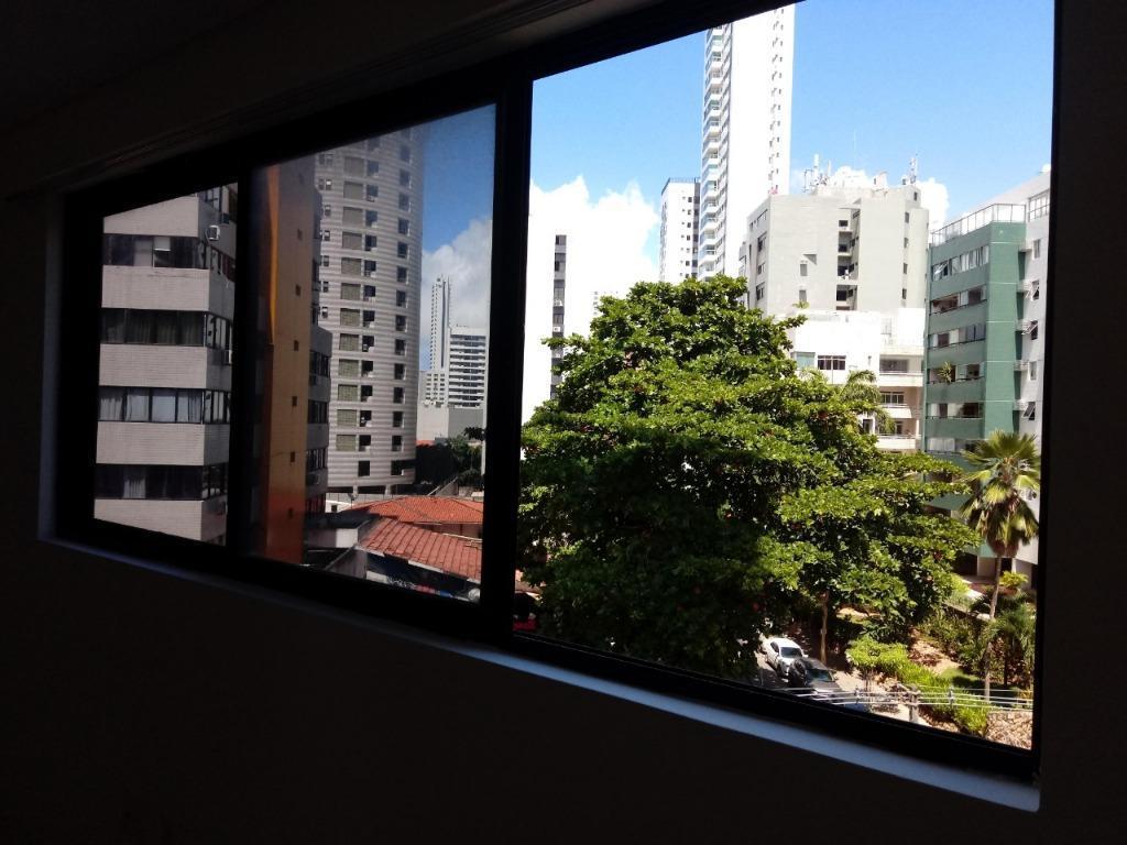 Ótimo Studio para locação no coração de Boa viagem, 26 m², ideal para quem busca facilidade de locomoção. Possui cozinha, 1 qto, 1 vaga, 2 elevadores, salão festas, piscina, sauna, churrasqueira e playground. Armários na cozinha, banheiro e dormitório.