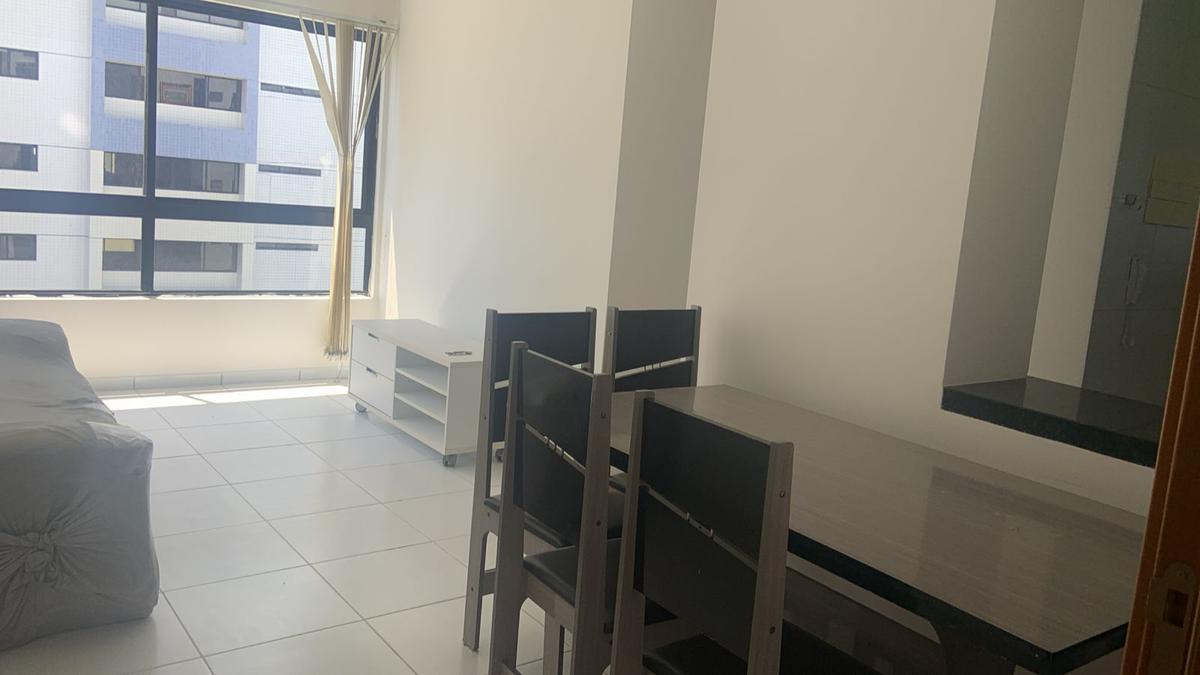 Apartamento mobiliado com 40m², 1 quarto, sala, wc, social, cozinha, 1 vaga de garagem.