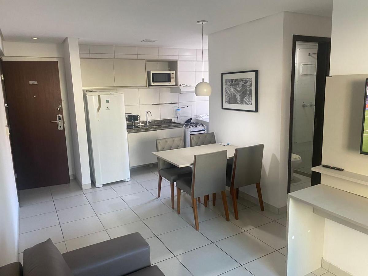 Apartamento mobiliado com 52m², 2 quartos sendo 1 suíte, sala, cozinha, wc social, 1 vaga de garagem. Ótima localização a 50m da praia, próximo do Shopping Recife, farmácias, academias.