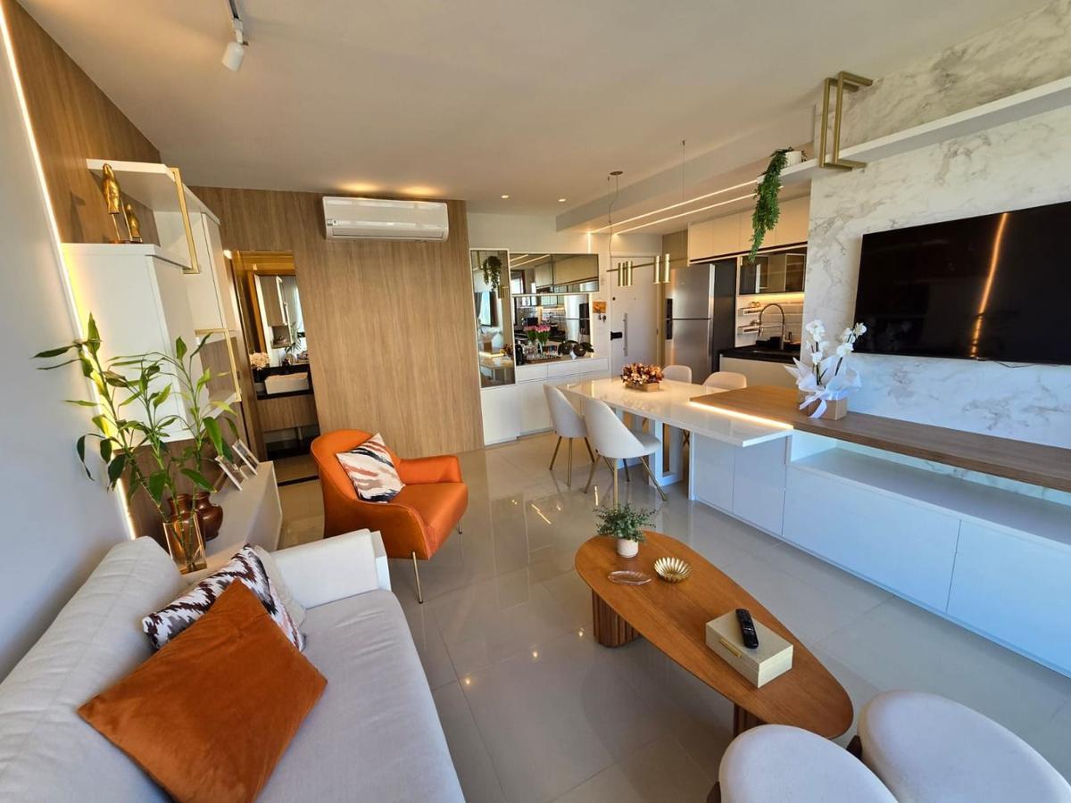 APARTAMENTO: Com 67,00m², 2 Quartos, Sendo 1 (master com closet ), 1 Banheiro Social, Cozinha Integrada a Sala, Sala para 2 Ambientes, Com Móveis Planejados, Iluminação Full Led, 1 Vaga Coberta e Ar Condicionados Splits em todos ambientes.