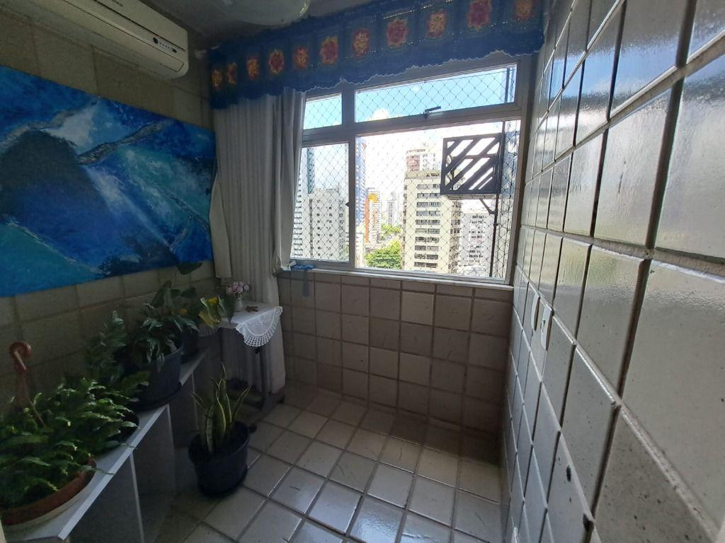 Este excelente apartamento, com 120 m² de área útil, conta com três (03) quartos, sendo uma (01) suíte, 02 varandas (sendo 01 com vista para o mar), armários nos cômodos, banheiro social, cozinha, dependência completa e uma (01) vaga na garagem.O prédio dispõe de central de gás, gerador, guarita, playground, portão eletrônico, salão de festas e um ótimo sistema de segurança.