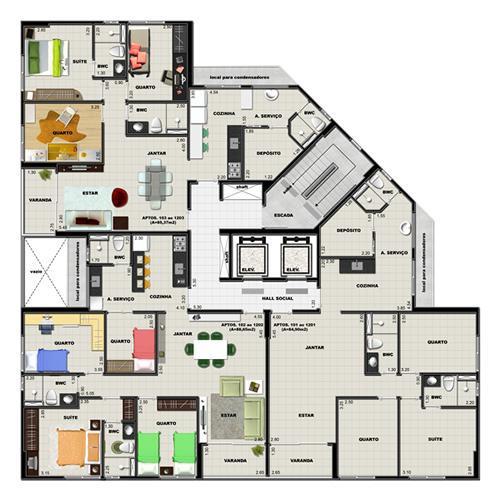 - 3 unidades por andar;