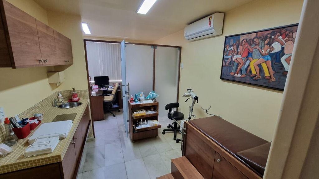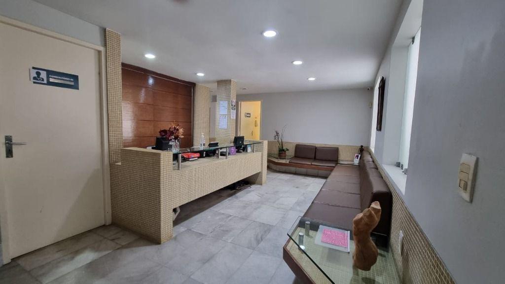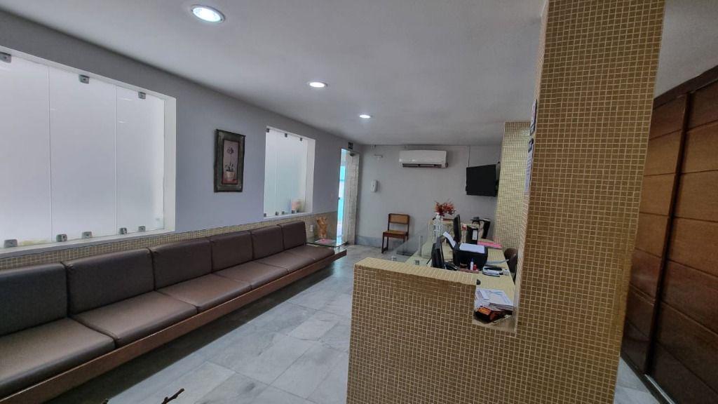 Parte inferior: 8 salas amplas + Recepção, 3 Wc sociais, copa/cozinha, despensa e área de serviço.