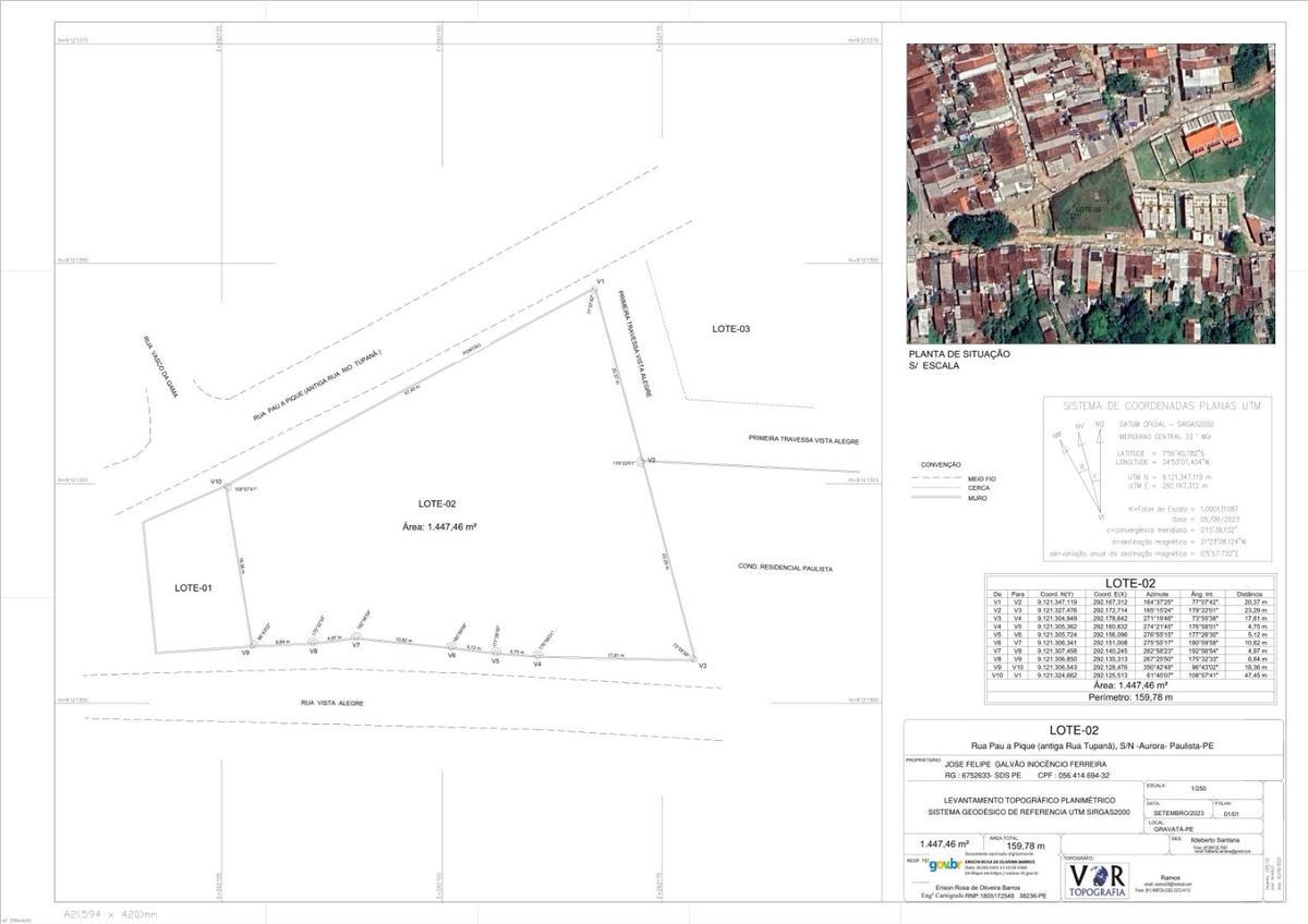 Terreno a venda na Aurora em Paulista, medindo 1,447,46m²