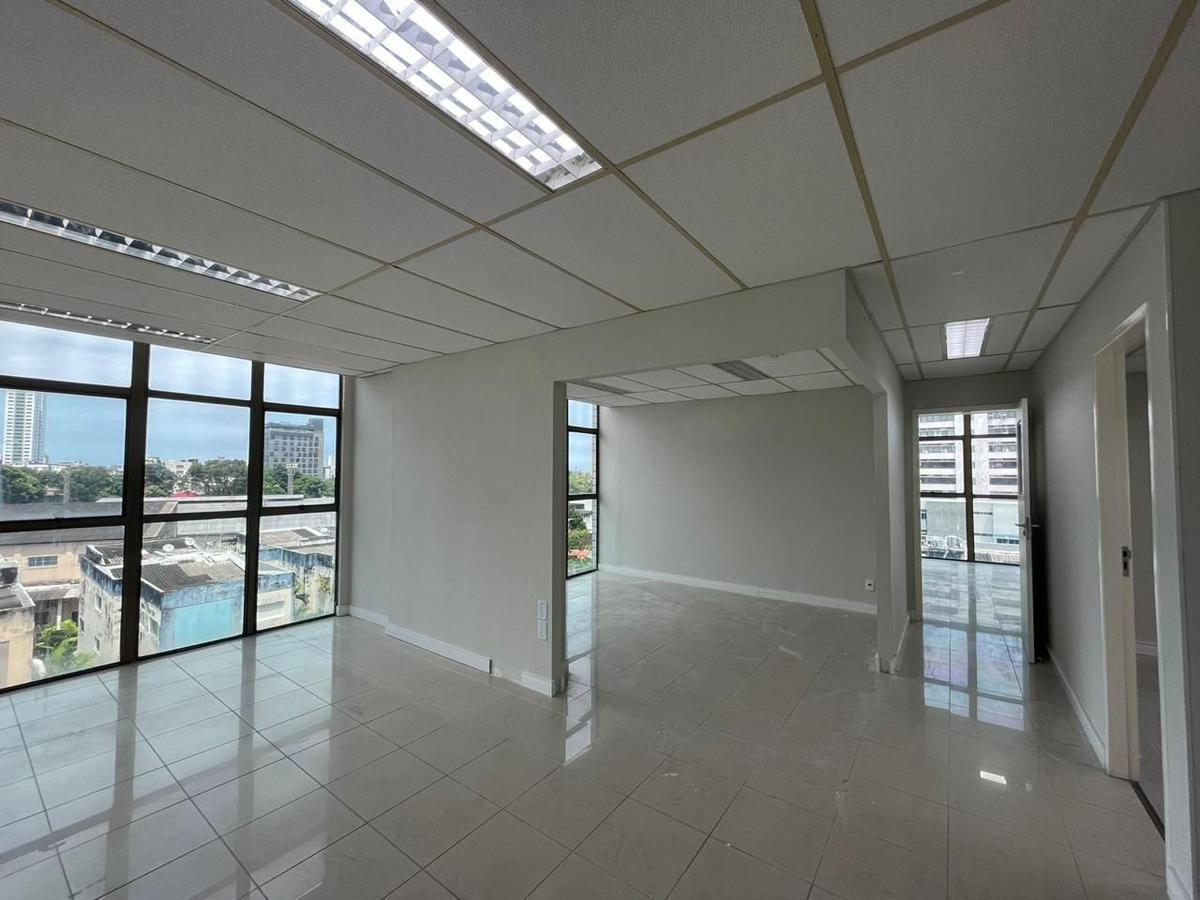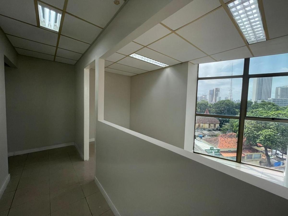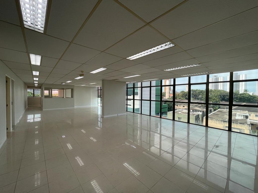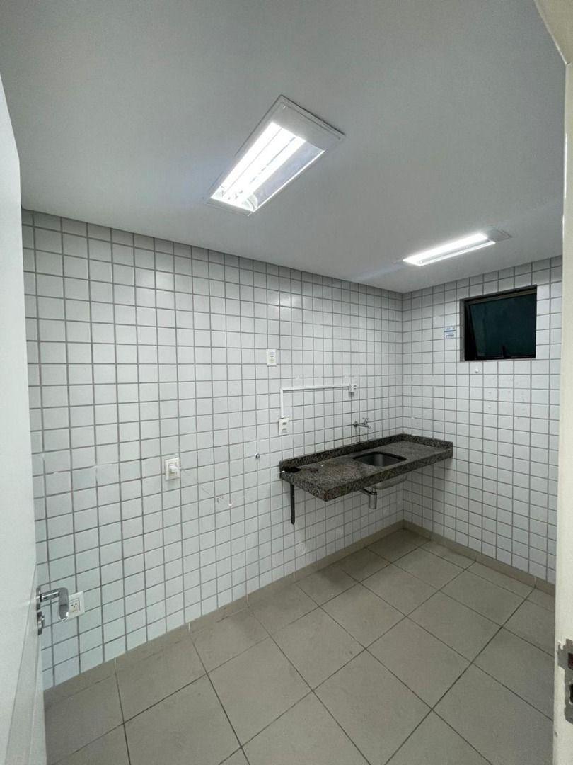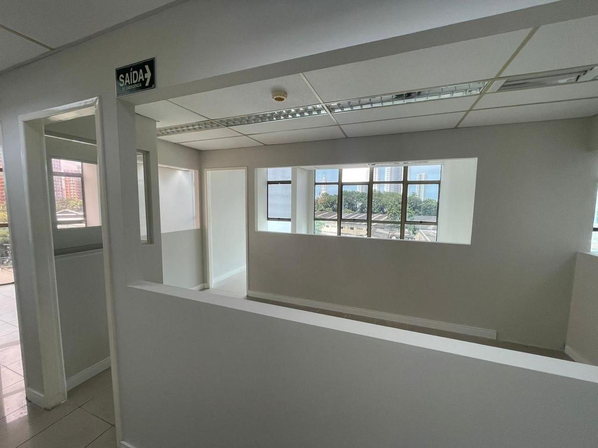 Sala entregue com piso em cerâmica, pintada, forro mineral, luminárias led e 1 wc.