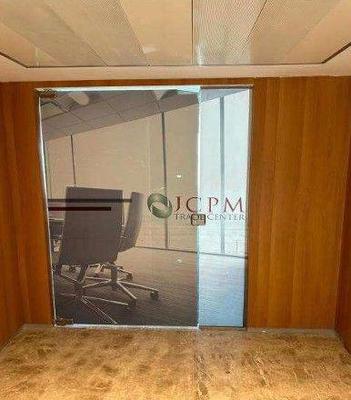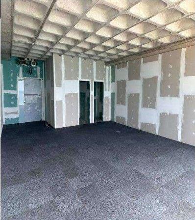 Sala comercial com 88,48m², piso elevado com carpete, banheiros, copa e forro (instalação), condomínio com água gelada.